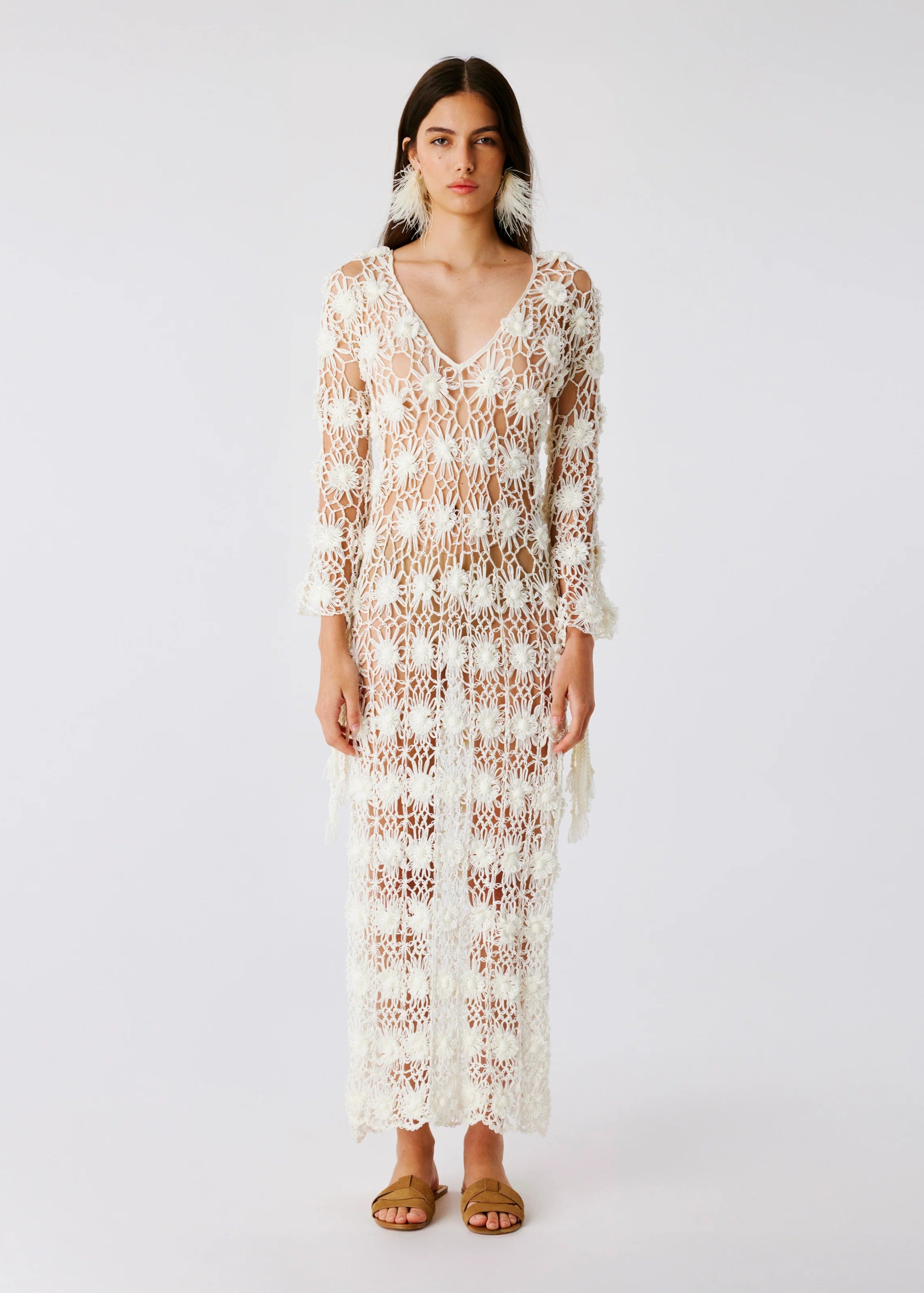 Bonbon Ivory Hand-Crocheted Fringe Maxi Dress