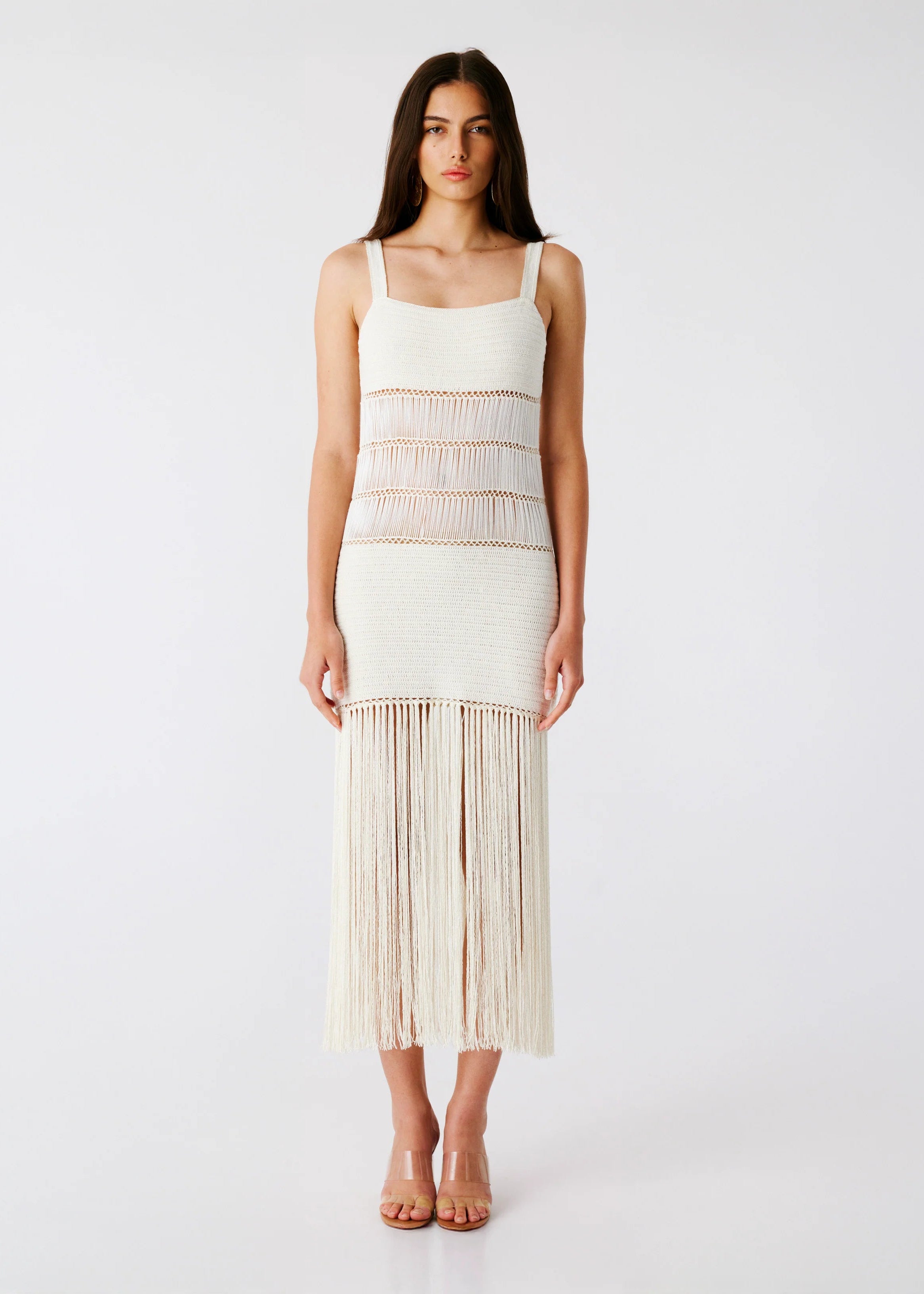Bonbon Ivory Hand-Crocheted Fringe Maxi Dress